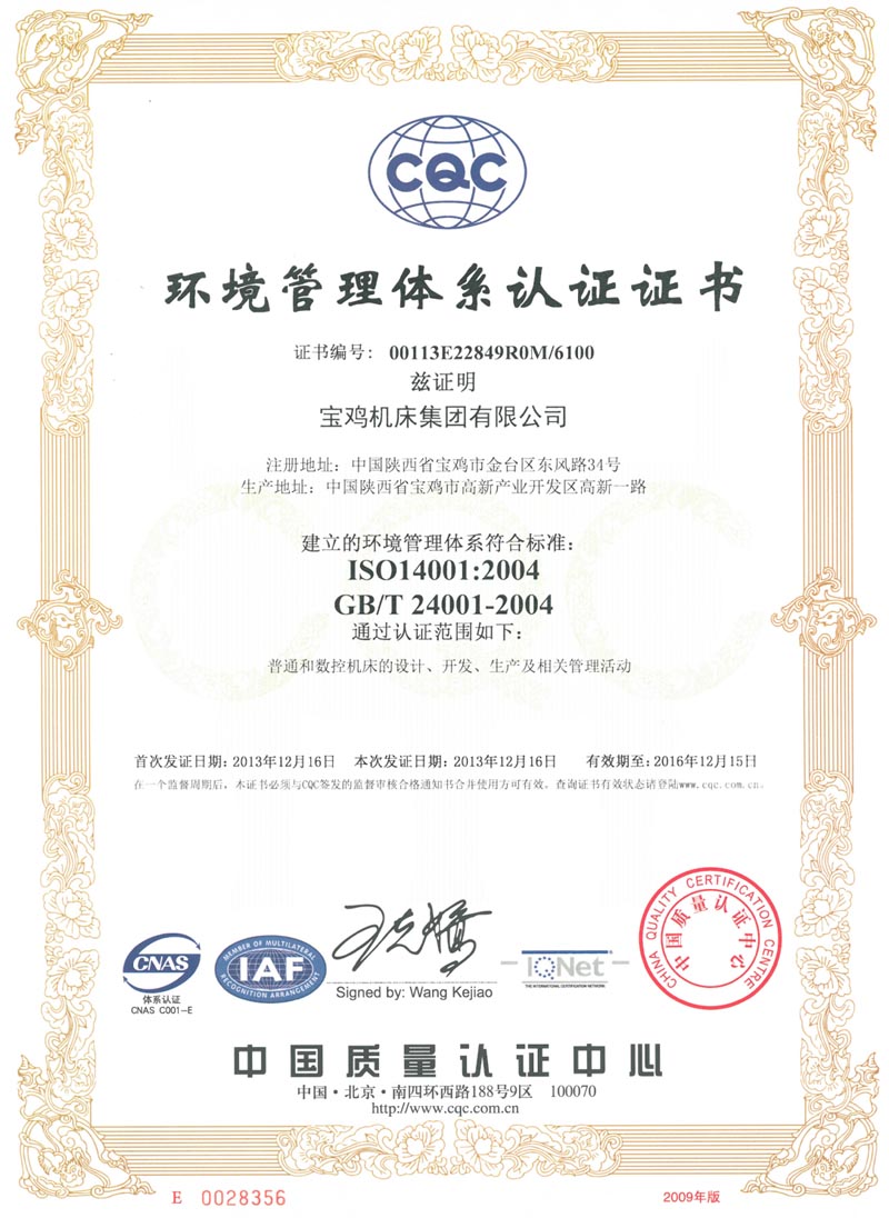 • 環(huán)境管理體系認(rèn)證證書